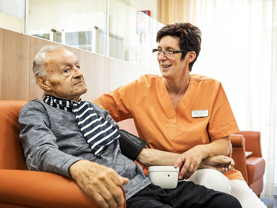 Unsere Pflege, Betreuung und Hauswirtschaft arbeiten eng zusammen, um Ihnen eine vielfältige, hygienisch einwandfreie und ernährungsphysiologisch ausgewogene Verpflegung auf den Tisch zu bringen. Natürlich berücksichtigen wir Ihre Ernährungsgewohnheiten und bieten Ihnen die Wahlmöglichkeit zwischen verschiedenen Mittagsmenüs an sowie Kostformen. Entsprechend den medizinischen Notwendigkeiten kümmert sich unser Team darum, dass Ihnen eine auf Ihren individuellen Flüssigkeits-, Nährstoff- und Energiebedarf abgestimmte Verpflegung angeboten wird.